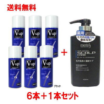 v-upボリュームアップスプレーブラック200g 6本 リンスインスカルシャンプーセット 特徴 ◇ミクロの特殊微粉末がスプレーされることにより、うぶ毛・細毛の一本一本を太らせ、瞬時に自然なボリュームある毛髪を演出します。