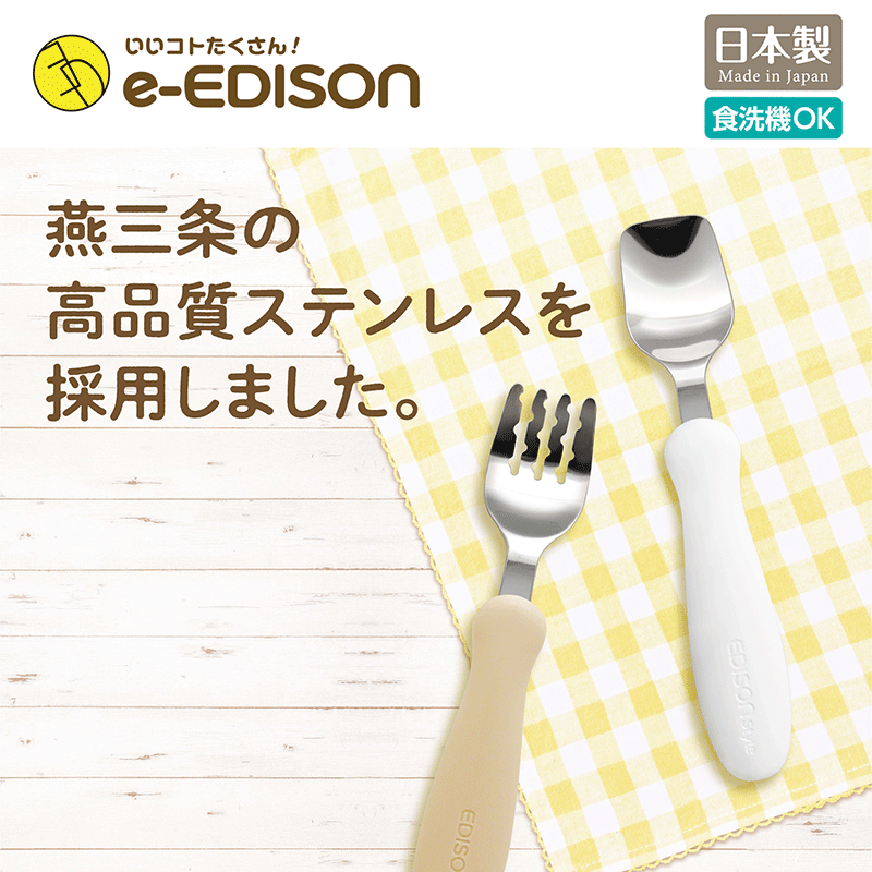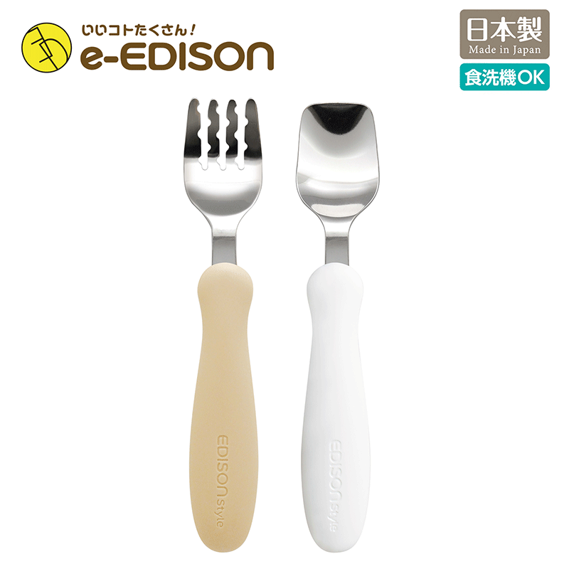日本製!★送料無料★エジソンママ EDISON Style カトラリー 高品質ステンレス フォーク&スプーン 保育園 幼稚園 入園 入学 じょうずに食べられるエジソンのフォーク&スプーンミルク&ポテト