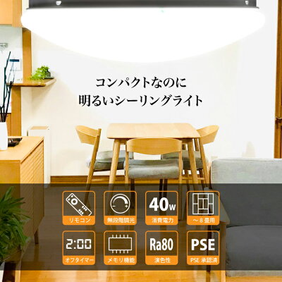 【製品仕様】 商品名:LEDシーリングライト 付属品:シーリングライト本体×1、リモコン×1、説明書 サイズ:直径…約380mm 高さ…約100mm 演色性:Ra80以上 消費電力:40W 全光束:4000lm 色温度:6000K 調光機能:無段階調光 オフタイマー機能:15分/30分/60分 保証期間:1年保証 ※商品到着から7日以上経過した商品につきましては送料のみご負担いただいております。