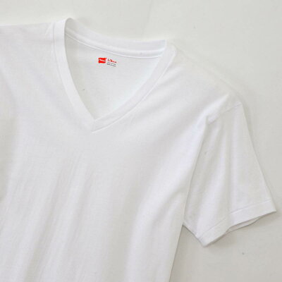Hanes ヘインズ 【3枚組】アカラベル VネックTシャツ 赤パック HM2145K ■素材:26/1 天竺 コットン100% ■製造:中国 着心地は、ソフトな風合いで、衿は昔ながらの雰囲気を出している為、テンションが弱く、洗いこむと衿が少したるむような雰囲気のTシャツです。