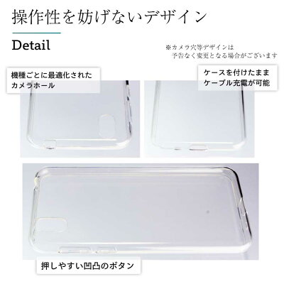 ・弾力性のあるソフトなTPU素材を使用・装着時に本体を傷つける心配もなくしっかり固定・機種ごとに設計しており装着したまま充電や写真撮影が可能・マイクロドット加工を施し本体との密着痕を防止【素材】TPU【商品に対するご注意】・製造時期により予告なくデザインや仕様が変更となる場合がございます・製造時期や機種により ストラップホール の有無が異なります・ご使用のディスプレイ環境により商品の色やイメージが、実物と異なる場合がございます・卓上タイプの充電器には対応しておりません・本製品利用による本体の紛失、破損、汚れ、内部データの破損は一切保証いたしかねます予めご了承の上、お買い求めください。