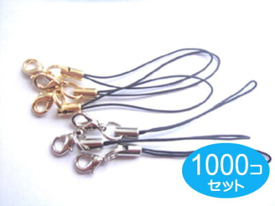 1000個セット ゴールド カニカン 2重リングつき ストラップ 紐 金具 ゴールド/ブラックヒモ