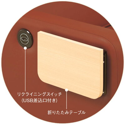 スマホ等の充電に便利なUSB差込口と折りたたみテーブルを標準装備。